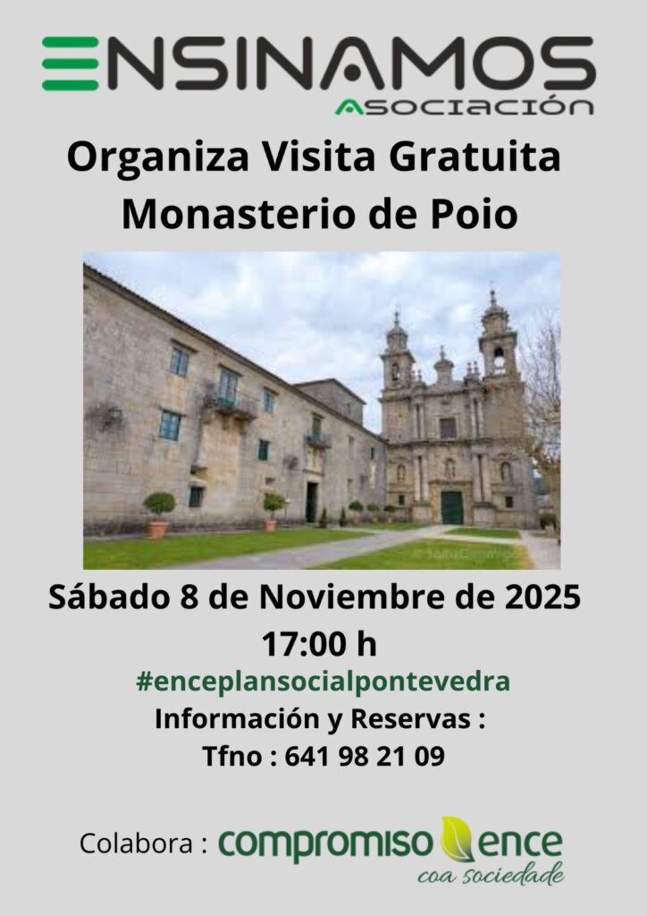 Visita al Monasterio de PoioPor Ensinamos / noviembre 6, 2025 Visita gratuita al Monasterio de Poio. Sábado 8 de Noviembre de 2025 a las 17h. #enceplansocialpontevedra
